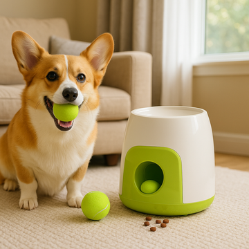 Place treats inside and load a ball. When your dog triggers the dispenser and returns the ball, a treat is released as a reward. It combines fetch with positive reinforcement to keep dogs active and engaged.